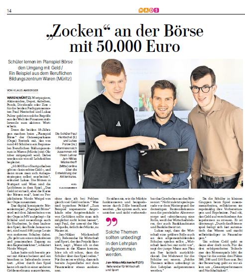 Unser Regionales Berufliches Bildungszentrum Müritz liegt im Herzen Mecklenburg-Vorpommerns. Durch das breit gefächerte Bildungsangebot sind wir ein Kompetenzzentrum für Berufliche Bildung in unserer Region und darüber hinaus.